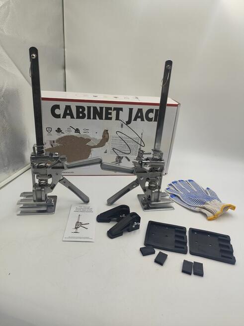 Stan bardzo dobry. Zestaw 2 sztuk podnośników montażowych (Cabinet Jack / Lever Arm Lifter) do precyzyjnego podnoszenia i ...