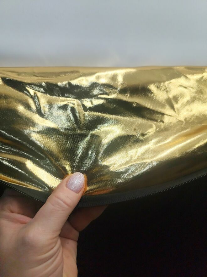 Srebrna i złota strona mają naturalne zagniecenia, co jest normalne przy tego typu blendach i nie jest wadą – nie wpływa na działanie ani jakość odbicia światła.